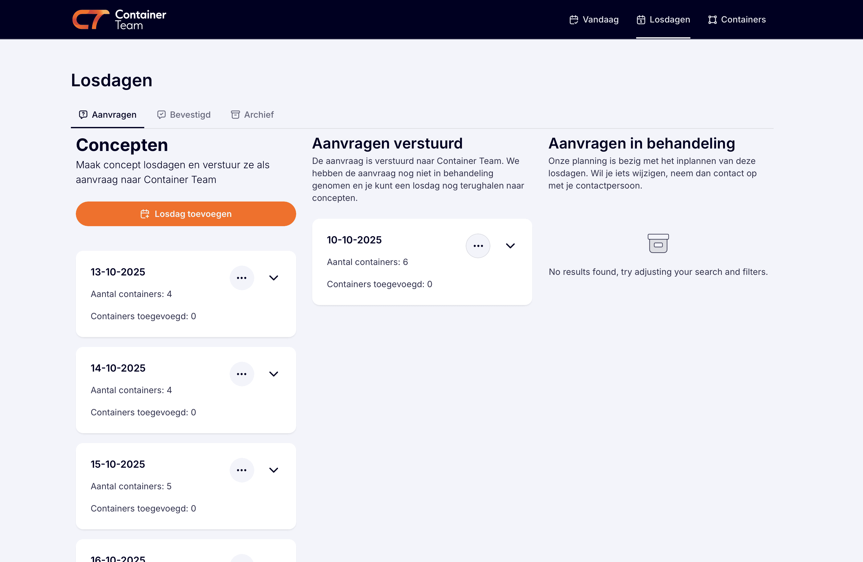 Creëer overzicht, vraag losdagen aan en geef wijzigingen door via ons online Container portaal voor klanten